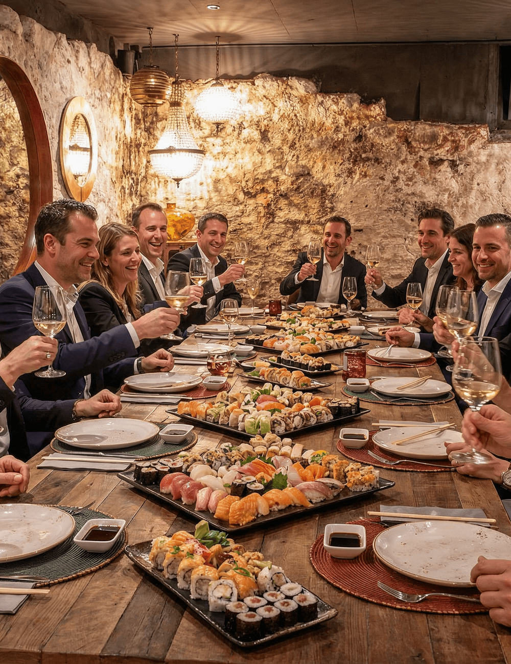 Unsere Pakete für Geschäftsanlässe sind modular und richten sich nach euren Wünschen – von der puren Sushi-Show bis zum Rundum-sorglos-Setup mit Deko, Technik, DJ und allem Drum und Dran.